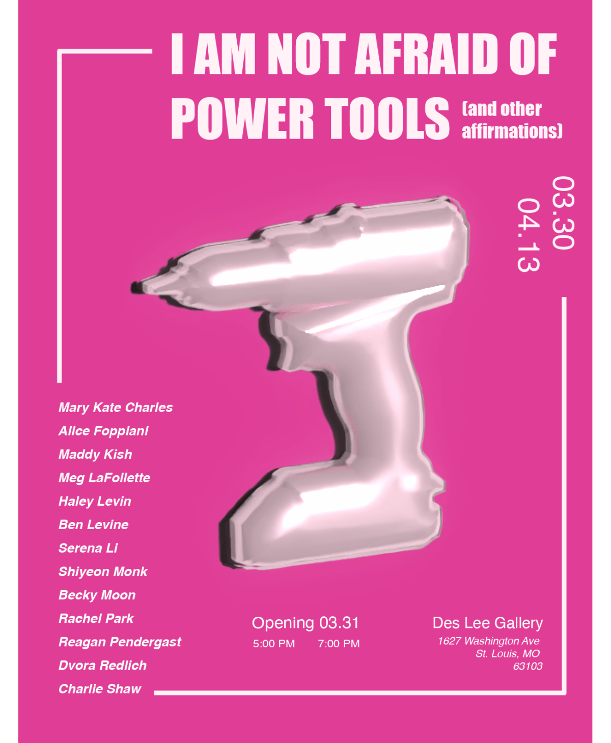 The Sam Fox School presents I AM NOT AFRAID OF POWER TOOLS (and other affirmations), the 2023 BFA Studio Art Junior Exhibition. The exhibition is a survey of work across media by thirteen artists in the spring 2023 Methods & Contexts course.